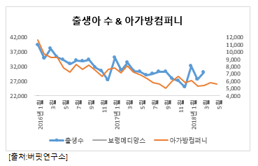 국가통계포털(KOSIS)에서 공개한 출생아 수(2017.11 기준)는 전월대비 3.23%(900명) 하락한 2만7000명이다.