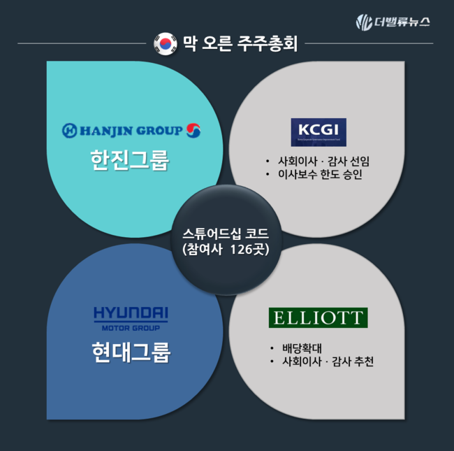 3월 정기 주주총회 시즌 스튜어드십코드 도입후 첫해 열기가 뜨겁다.[구성=더밸류뉴스]