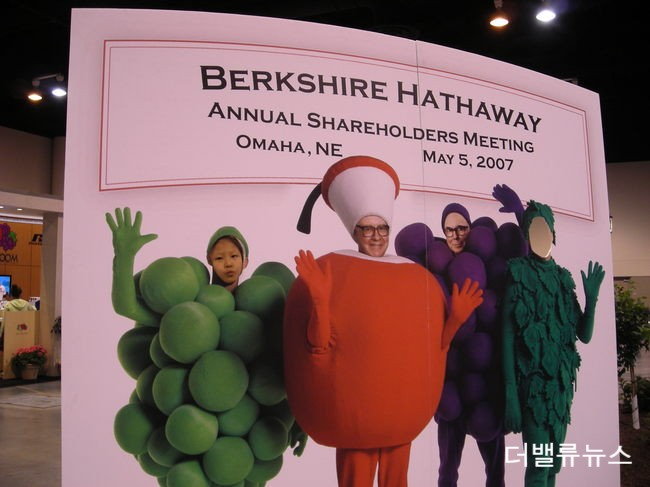 2007년 5월 미국 네브라스카주 오마하에서 열린 '버크셔 해서웨이 주주총회'의 행사장에 안내 입간판이 내걸려 있다. [사진=더밸류뉴스]