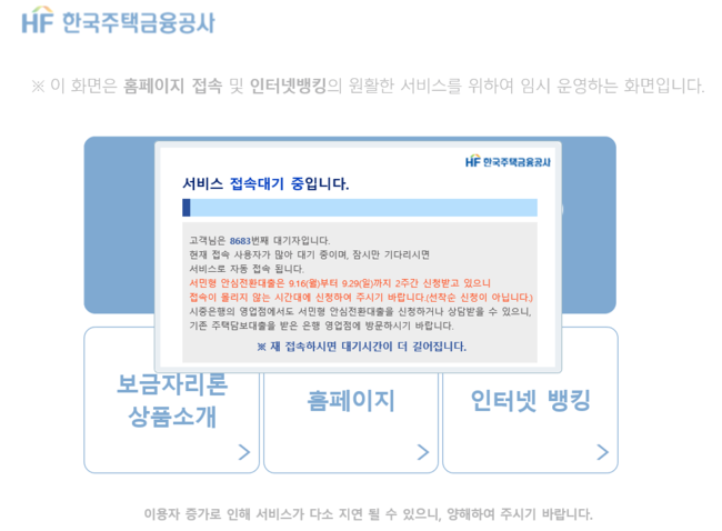 한국주택금융공사 홈페이지 대기자가 속출하고 있다. [사진=한국주택금융공사]