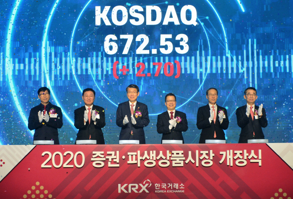 2일 한국거래소는 서울 여의도 콘래드 서울 호텔에서 증권·파생상품업계 및 관계자 300여명이 참석한 가운데 ‘2020년도 증권·파생상품시장 개장식’을 개최했다. [사진=한국거래소]