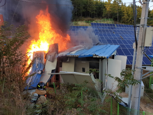 지난해 10월21일 오후 4시 14분 경남 하동군 진교면 태양광발전설비 ESS에서 과부화 등으로 화재가 발생했다. [사진=하동소방서]