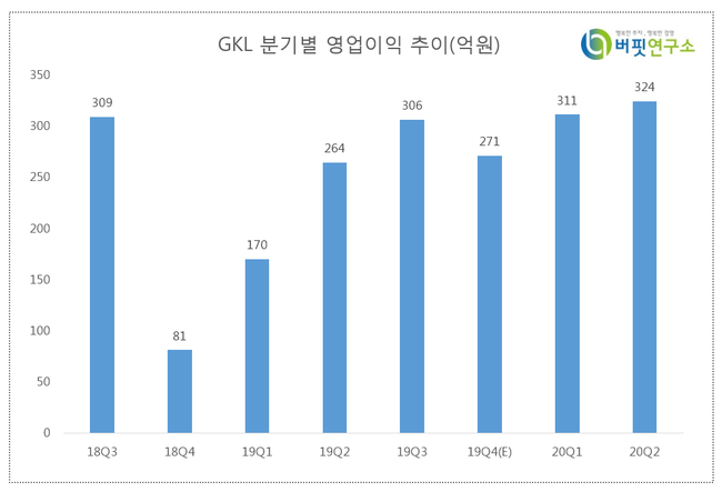 GKL의 올해 영업이익은 연결기준 1분기 299억원, 2분기 310억원으로 전년비 각각 75.8%, 17.2% 증가할 것으로 예상된다.