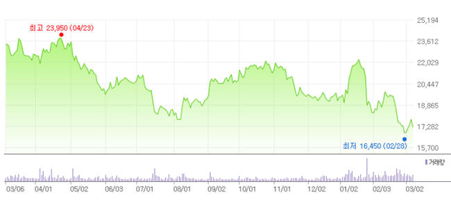GKL의 최근 1년 주가 추이. [사진=네이버 증권]