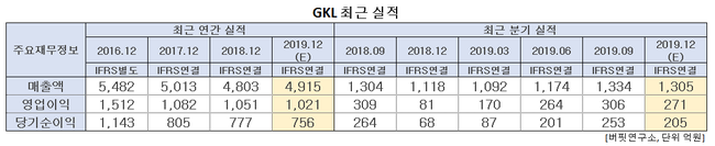 GKL은 2018년 4분기부터 지난해 2분기까지 드랍(Drop)율은 성장했지만 프로모션 영향으로 홀드율은 7~9%대로 낮았고 매출액도 감소했다. 이 같은 기저효과로 지난해 4분기부터 올해 2분기까지는 실적 개선이 가능할 것으로 보인다.