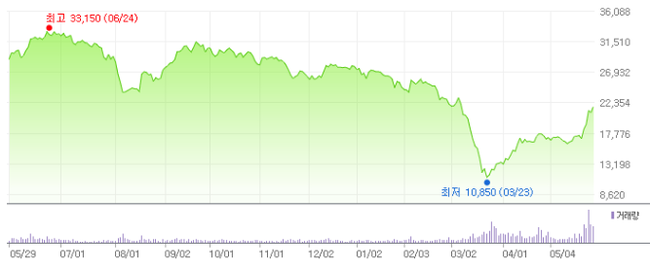 대우조선해양의 최근 1년간 주가 추이. [사진=네이버 증권]