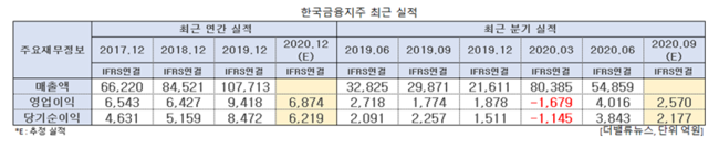 한국금융지주 최근 실적. [사진=더밸류뉴스]