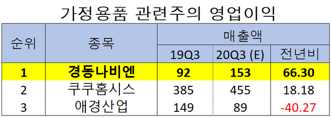 가정용품 관련주 영업이익. [이미지=더밸류뉴스]