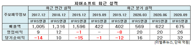 지어소프트 최근 실적. [이미지=더밸류뉴스]