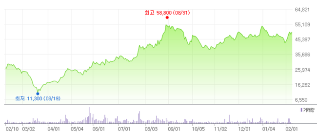 인크로스는 지난해 8월 31일 52주 신고가(5만8800원)를 갱신했다.