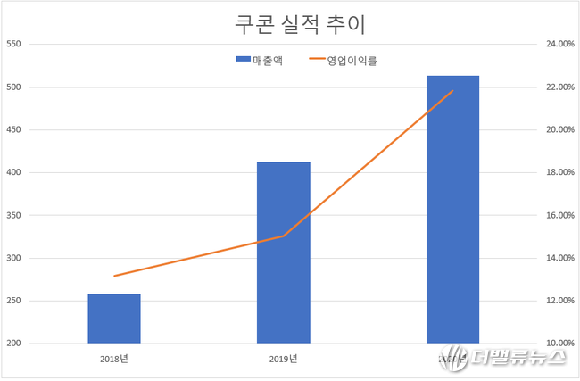 쿠콘의 매출액, 영업이익률 추이. [이미지=더밸류뉴스]