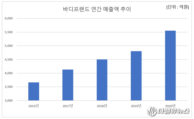 바디프랜드 연간 실적 추이. [그래프=더밸류뉴스]