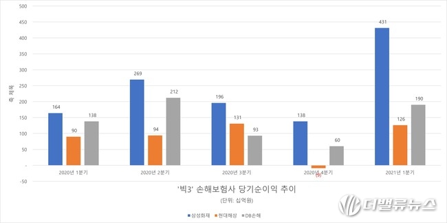 '빅3' 손해보험사 당기순이익 추이. [이미지=더밸류뉴스]