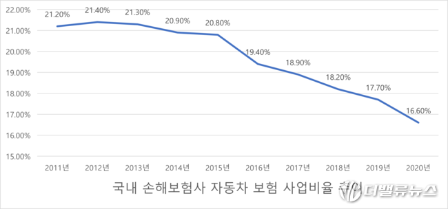 국내 손해보험사 사업비율 추이. [이미지=더밸류뉴스]