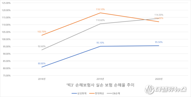'빅3' 손해보험사 실손보험 손해율 추이. [이미지=더밸류뉴스]