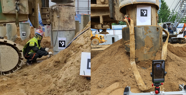 기존 방식의 파일 리바운드 체크 방식(왼쪽)과 DL이앤씨가 개발한 파일 리바운드 체크 테스트 디지털화 장비(오른쪽). [이미지=DL이앤씨]DL이앤씨는 협력업체와 함께 시공품질을 높이면서도 근로자에게 안전한 작업환경을 제공하기 위한 기술도 개발하고 있다. ‘파일 리바운드 체크 디지털화’ 기술이 대표적이다. 이 기술은 중장비로 파일을 지반에 꽂아 넣을 때 발생하는 반동을 디지털 장비로 측정하는 것이다. 기존 방식에서 발생하는 현장 작업자 사고를 방지할 수 있을 뿐만 아니라 스마트폰을 활용한 디지털 장비를 이용하면 원격으로 측량이 가능해 정확한 데이터를 산출할 수 있다.