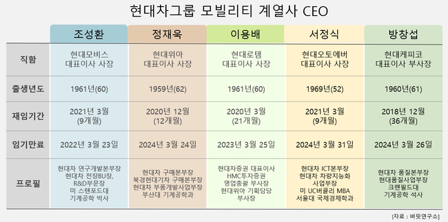 현대차그룹 모빌리티 계열사 CEO 현황. [자료=버핏연구소]