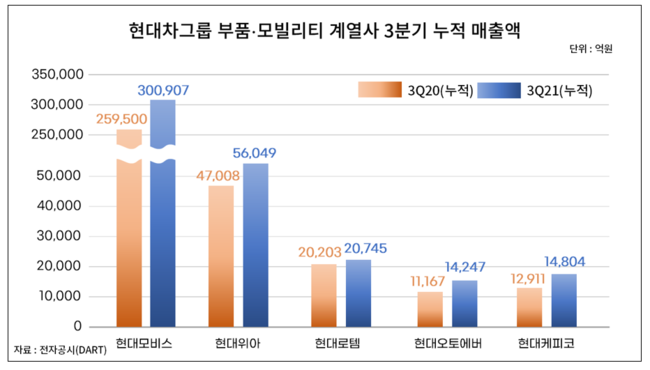 ◆'현대모비스·위아·로템·오토에버·케피코' 5대 모빌리티 계열사, 1~3Q 실적↑