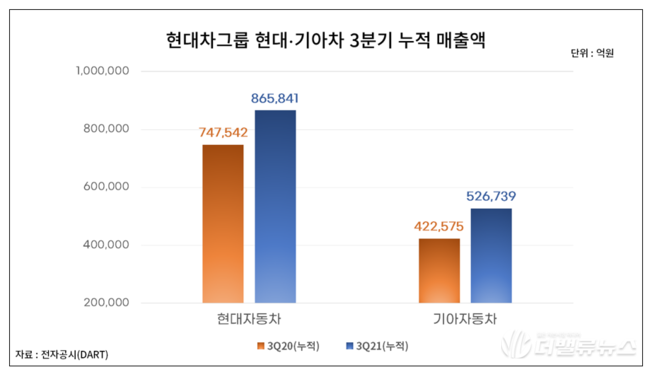 현대가아차 1~3분기 매출액 추이. [자료=금융감독원 전자공시]