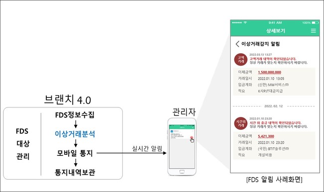 FDS(이상거래감지시스템)은 ‘고액출금거래’, ‘지정시간 외 거래’ 등 일상적 범주에서 벗어난 이상금융거래 발생 시 관리자에게 실시간으로 통지하는 강력한 감시기능을 제공한다.