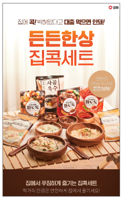 이 밖에 단백질인 질러 육포 3종과 생생듬뿍 국·탕·찌개 제품 등을 묶은 ‘불금 안주 해장 집콕세트’, 간편하게 소포장돼 쉽게 반찬으로 활용할 수 있는 쓱쓱싹싹 밥도둑 3종과 국수 제품 등으로 구성된 ‘든든한상 집콕세트’도 출시했다.