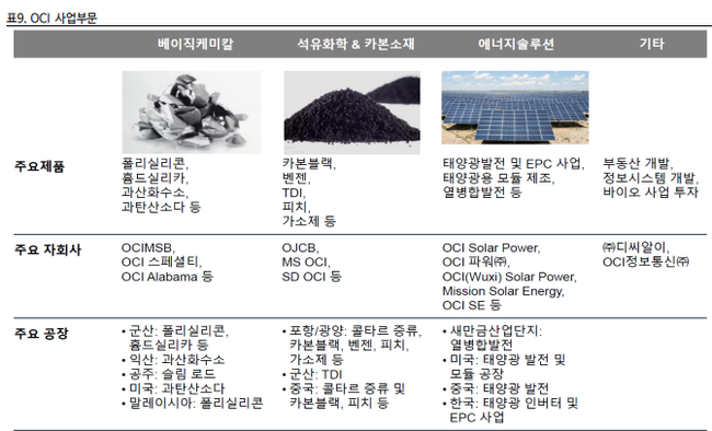 OCI의 사업 부문 현황. [자료=하이투자증권]
