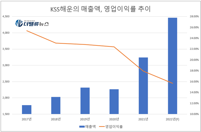 KSS해운의 매출액, 영업이익률 추이. [자료=KSS해운 사업보고서]