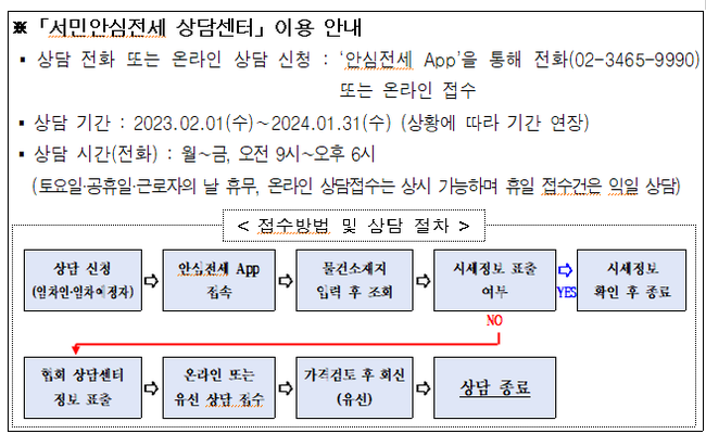 임차인과 임차예정자는 국토부에서 출시한 ‘안심전세 앱’에서 시세정보가 나타나지 않는 경우 ‘안심전세 앱’을 통해 전화 또는 온라인 상담을 신청할 수 있으며, 24시간 이내에 결과를 안내받게 된다. 담대상 주택은 ‘안심전세 App’에서 시세가 확인되지 않는 수도권(서울, 인천, 경기) 소재의 전세가 7억 원 이하로서 50세대 미만 공동주택 등이다.