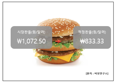 영국의 경제전문지 이코노미스트에서 산출한 「1월 빅맥지수(Big Mac Index)」 에서 한국의 적정 환율(Implied Exchange Rate)은 833.33이다.
