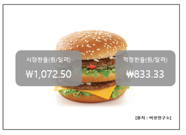 영국의 경제전문지 이코노미스트에서 산출한 「1월 빅맥지수(Big Mac Index)」 에서 한국의 적정 환율(Implied Exchange Rate)은 833.33이다.