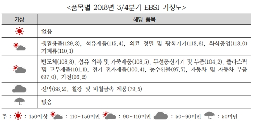 EBSI 지수가 100을 넘으면 향후 수출 여건이 개선된다는 의미다. 특히 지난해 2분기 이후 6분기 연속 100 이상을 기록하면서 호조세를 보일 것으로 전망했다.