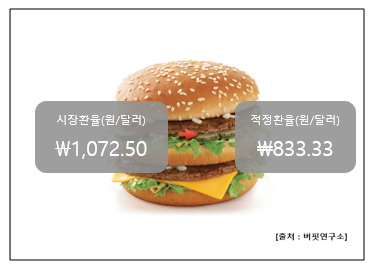 영국의 경제전문지 이코노미스트에서 산출한 「1월 빅맥지수(Big Mac Index)」 에서 한국의 적정 환율(Implied Exchange Rate)은 833.33이다.
