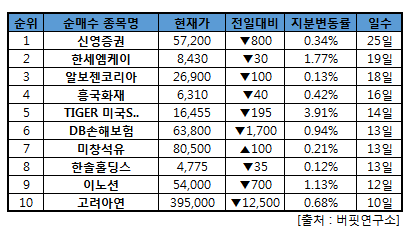 [버핏연구소=로봇 기자] 2일 코스피 시장에서 기관의 연속 순매수 상위 5개 종목은 신영증권(001720), 한세엠케이(069640), 알보젠코리아(002250), 흥국화재(000540), TIGER 미국S..(225040)이다.