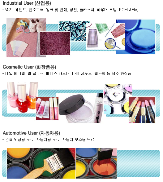 이 회사는 아모레퍼시픽, LG생활건강 등 국내 화장품 업체뿐만 아니라 로레알, 에스티로더, 인터코스등 글로벌 화장품 업체에 까지 진주광택안료를 공급하고 있으며 KCC, Nippon Paint 등 해외 자동차 도료 업체로도 제품을 공급하고 있어 안정적인 매출처를 확보하고 있다.
