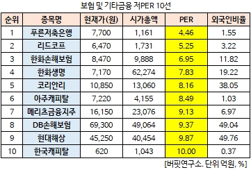 [버핏연구소 김승범 연구원] 푸른저축은행(007330)의 PER(주가수익비율)가 4.46배로 보험 및 기타금융 업체 가운데 가장 낮았다.