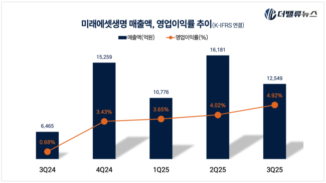 미래에셋생명 매출액 및 영업이익률 추이. [이미지=더밸류뉴스]